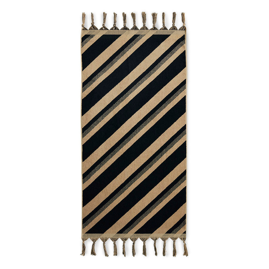 Crafted in soft, absorbent cotton, the decorated bath towels are designed to enlighten your bathroom space. The generously-sized towels of 650 g/m2 hotel quality, are available in five different jacquard woven patterns with hand-knotted fringes. Perfect for use in the bathroom, at the beach or poolside.