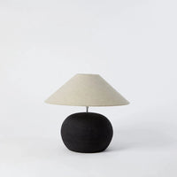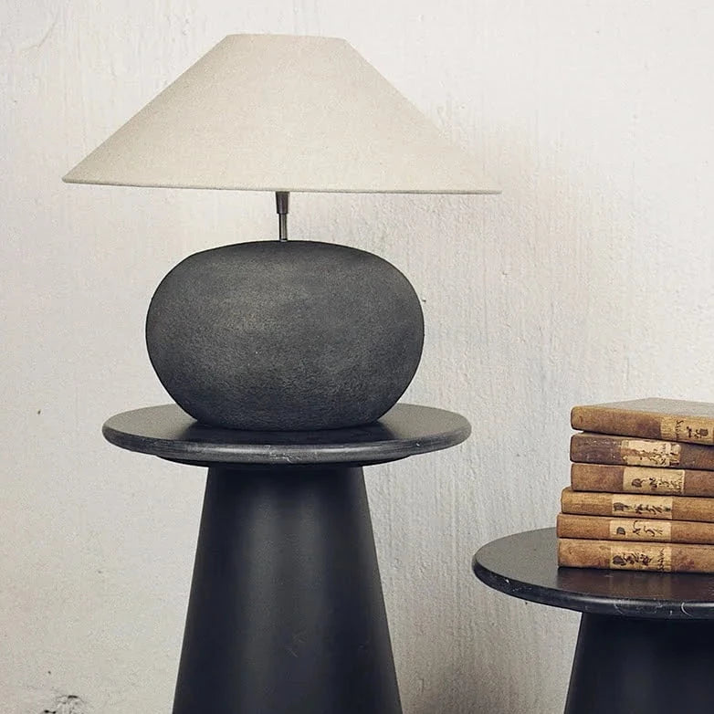 A softly rounded black lamp base made of cement and stone. Matches perfectly with a number of lamp shades including the Grace Small.