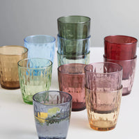 Add warmth and personality to your table with the Mosaic Water Glass Set in Red Shades. Featuring a textured mosaic pattern that catches and reflects the light, each glass brings subtle movement and vibrancy to your drinkware. The four-piece set includes a mix of red-toned colours — from soft blush to deep ruby — perfect for creating a cohesive yet varied look.