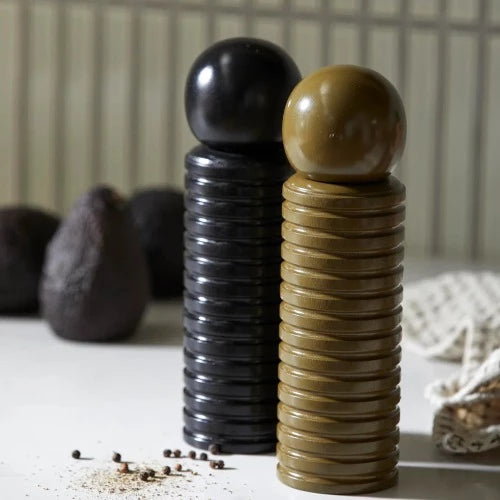 RAS green lacquered spice grinder in acacia wood. An elegant spice grinder that is both practical and pretty and will fit into most homes. RAS has a classic design, and its grinder is made from ceramics. RAS comes in several variants and this one is the bold choice with its deep green color that is sure to stand out and bring a personal touch to your decor.