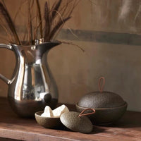 SANDY storage jar is made from ceramics and has a green-colored, rustic surface. With an organic silhouette and a practical leather strap, SANDY is a simple yet elegant jar and can be used as a stylish, convenient way to store small objects throughout your home. SANDY is available in several variants.