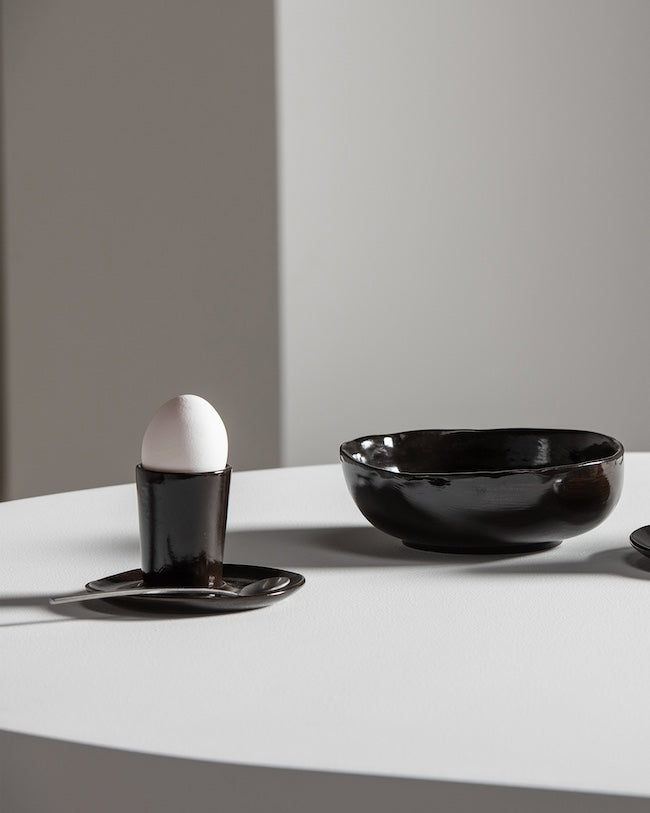 The saucers of the La Mère collection combine a sense of nostalgia with a contemporary look. The saucers can be mixed and matched with the off-white tableware, because of the warm colors that were chosen for the glaze, such as warm dark brown, almost black and red.