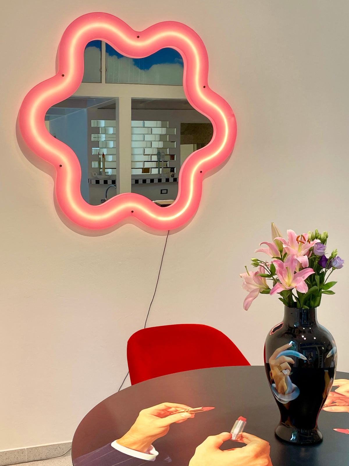 Add a whimsical touch to your space with the Supercurve Flower and Tiny Flower mirrors by Seletti. These vibrant mirrors feature bold floral outlines that seamlessly blend functionality with playful design. Perfect for creating a statement wall or adding a pop of personality to smaller spaces. Choose between the larger Flower mirror for maximum impact or the Tiny Flower mirror for compact charm.