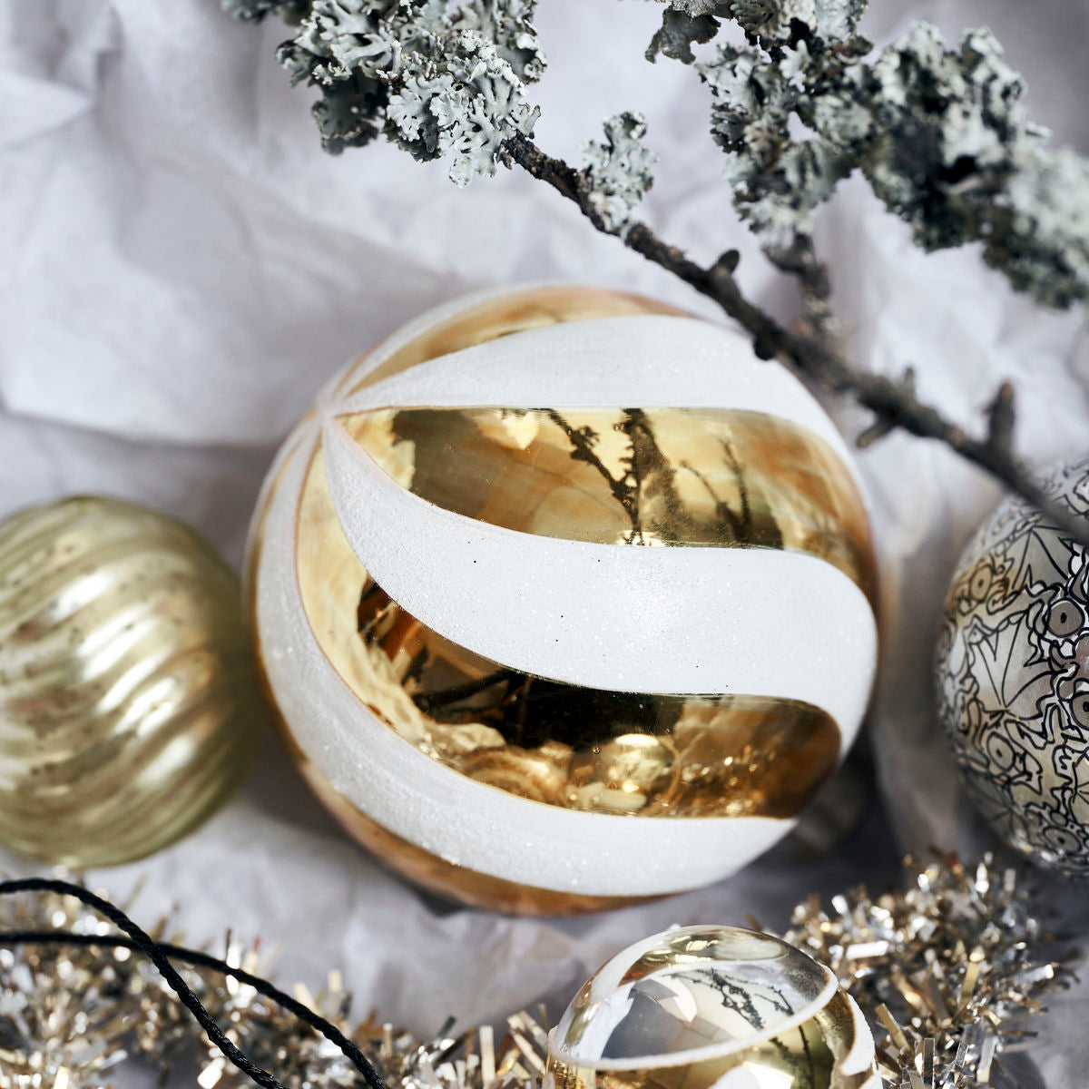 This gold and white swirl bauble from House Doctor is sure to create a festive atmosphere. From the swirl design to the classic colours and mix between a smooth and textured surface, this bauble adds finesse to your Christmas décor. Mix Twister with stripes and plain ornaments for a balanced look or stick to white and gold for a home with a winter wonderland feel. You simply cannot go wrong with this bauble as it suits anything from a vintage to contemporary theme.
