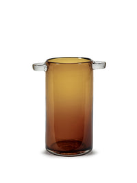 Vase Amber from the new Wind & Fire collection by Marie Michielssen for Serax. Vases reminiscent of the pharmacy jars of yesteryear. The organic versions in brown, green and dark blue, the tighter in heavenly blue and cognac. "The transition between those two colors is reminiscent of the transition between sea and beach," says Marie.
