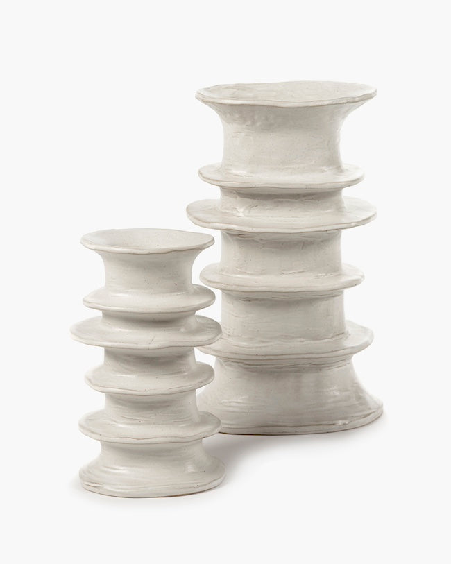These handcrafted Billy vases have a playful look and feel. The unique shapes and imperfections of these vases only make them even more covetable. These white vases come in various sizes and can be endlessly combined.