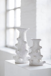 These handcrafted white vases are real artworks, radiating craftsmanship. Their timeless off-white colourway and organic shapes create a soothing, serene vibe in any interior.