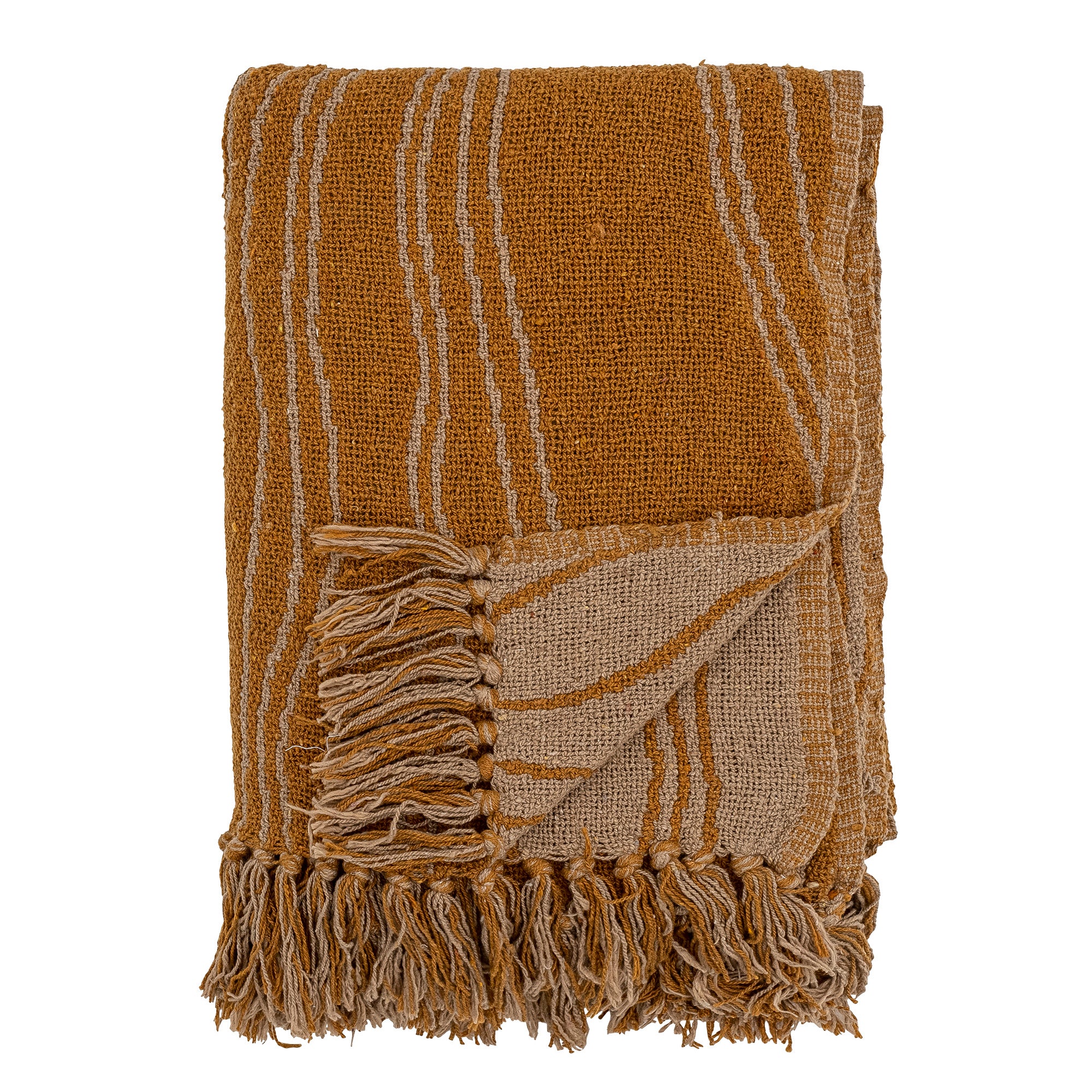 Wrap yourself in warmth with the Ginna Recycled Cotton Throw by Bloomingville, a beautifully soft and tactile blanket designed to elevate your everyday comfort. Woven in warm brown tones with a gently undulating wavy pattern, it brings effortless Scandinavian charm to your sofa, reading nook, or bed.