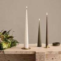 These 'ester and erik' round plates are simply and stylishly designed and go well with all their handmade candles. The plates are mainly used with the beautiful cone candles and pillar candles. The candle is held in place by three spikes so that all candles sit securely. In addition, the plate has a foam backing to protect the underlying surface. Medium is 12cm diameter, with the small being 9cm