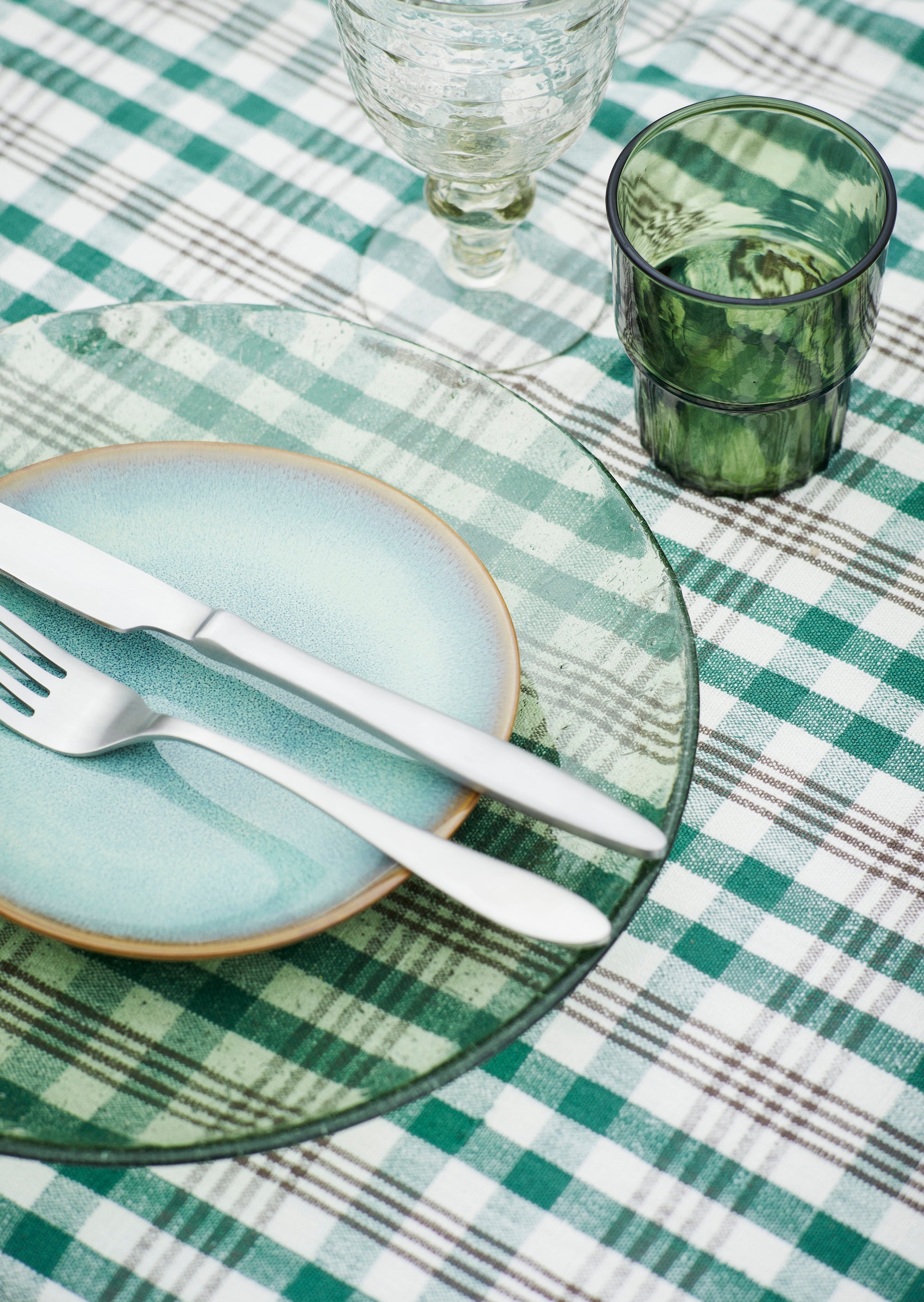 Whether you mix colours for a playful, expressive table or keep to one tone for a calmer look, these glasses pair beautifully with our coloured plates, linen tablecloths, and summer serving bowls.