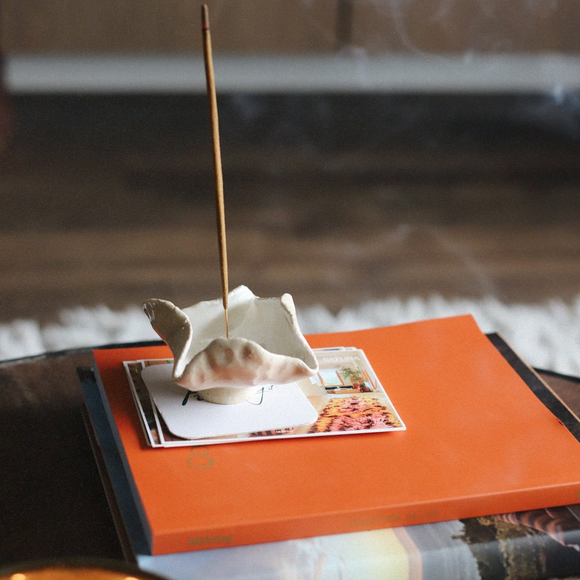 Crafted with intention, these incense holders feature a removable brass centre to hold standard incense sticks and are designed to age beautifully with use. From soft whites and cherry pinks to dramatic blacks and warm terracottas, every holder offers its own quiet character. No two are exactly alike—each one is a little moment of stillness made by hand.