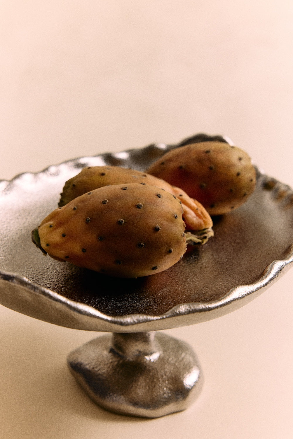 Sometimes a space just needs height and contrast to feel finished. This plateau solves that instantly. Its sculptural pedestal form lifts everyday objects into something display-worthy, while the textured chrome glaze adds depth and tactile interest. It is functional, but it also feels like art. A simple way to make your kitchen island or dining table feel styled rather than cluttered.