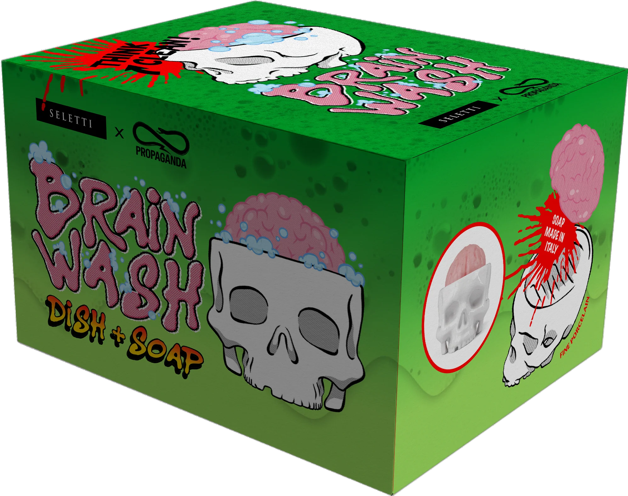 Scrub your mind clean (literally). The Brain Wash set by Seletti x Propaganda turns a daily habit into a design moment: a glossy white porcelain skull that cradles a pink, brain-shaped soap. Equal parts witty and functional, the dish keeps bars high and dry with inner ridges, while the vegetable-based soap lathers beautifully. Park it by the sink to raise eyebrows and smiles in equal measure—or wrap it up as the ultimate tongue-in-cheek gift.