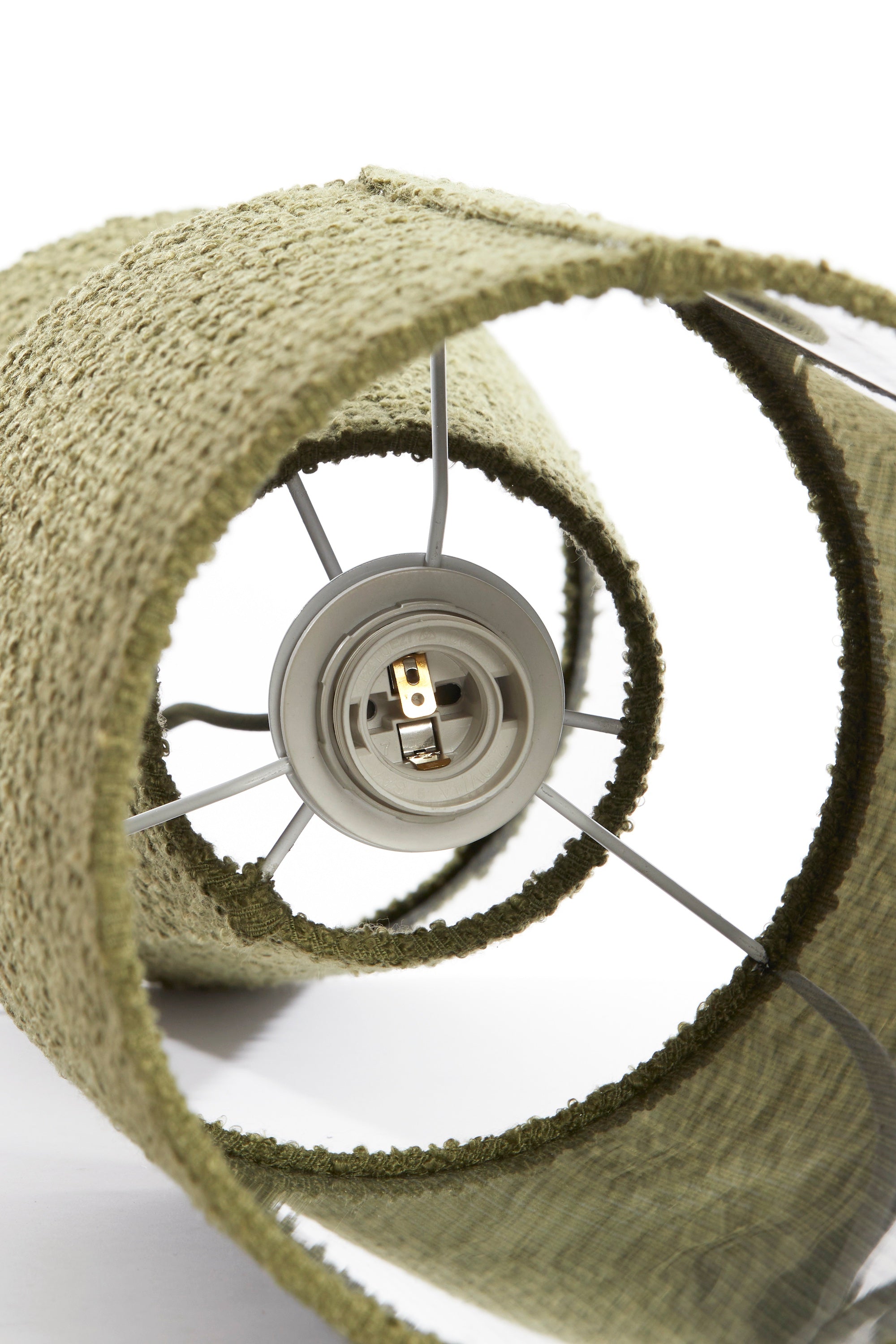 The olive tone adds sophistication without overpowering your décor — ideal for bedrooms, living rooms, hallways, or styled on a console table to create an inviting evening glow. When lit, the bouclé weave softens the light into a warm, atmospheric hue that instantly makes your home feel calmer and more considered.