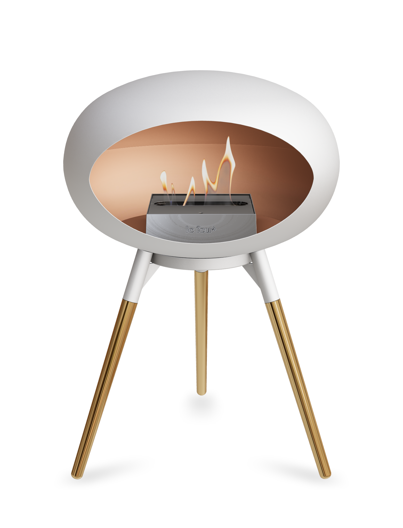 The Le Feu Dome Ground Low is the original freestanding bioethanol fireplace that turns any room into a calm, welcoming space. Its sculptural dome and handcrafted legs create a natural focal point that feels more like furniture than a heater. Designed for flexibility, it can be easily moved from living room to dining space – or even outdoors for summer evenings (simply protect it when not in use).