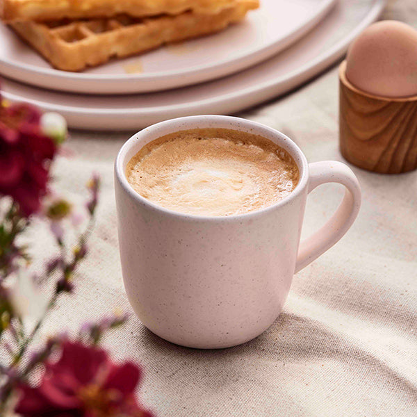 The raw natural look is combined with a stylish, simple design in neutral, Nordic shades. The mugs are made of high-quality, double-burnt stoneware, and each mug has its unique handmade finish. Combine with bowls and deep plates to complete the look.